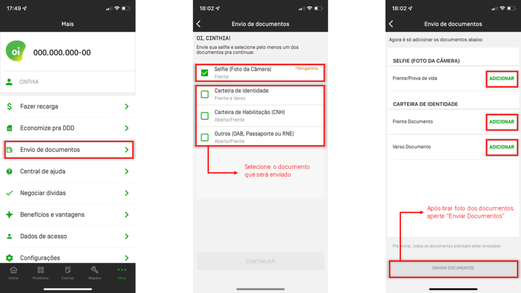 - Documentos de identificação do novo titular;