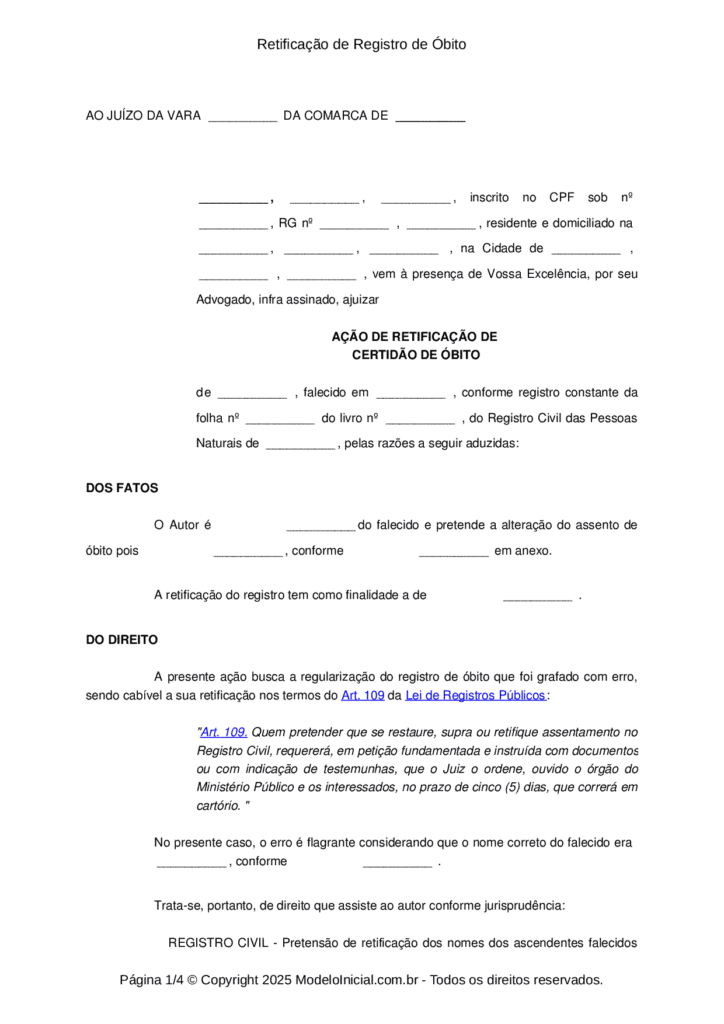 O registro de óbito é um procedimento administrativo obrigatório em todo o território brasileiro. Ele formaliza a morte de um indivíduo e é realizado em um Cartório de Registro Civil das Pessoas Naturais. O prazo para a realização do registro varia, mas normalmente deve ser realizado em até 15 dias após o falecimento. Caso contrário, multas e complicações legais podem ser aplicadas.